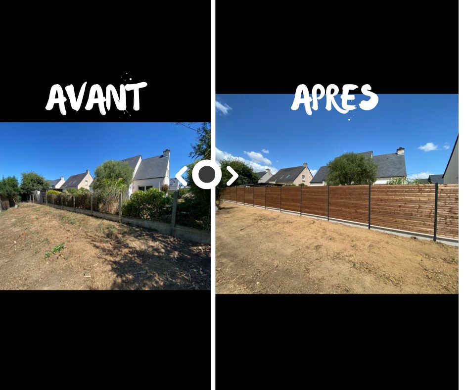 On remplace une vieille clôture fatiguée par une belle palissade bois & aluminium , moderne et parfaitement alignée 💪